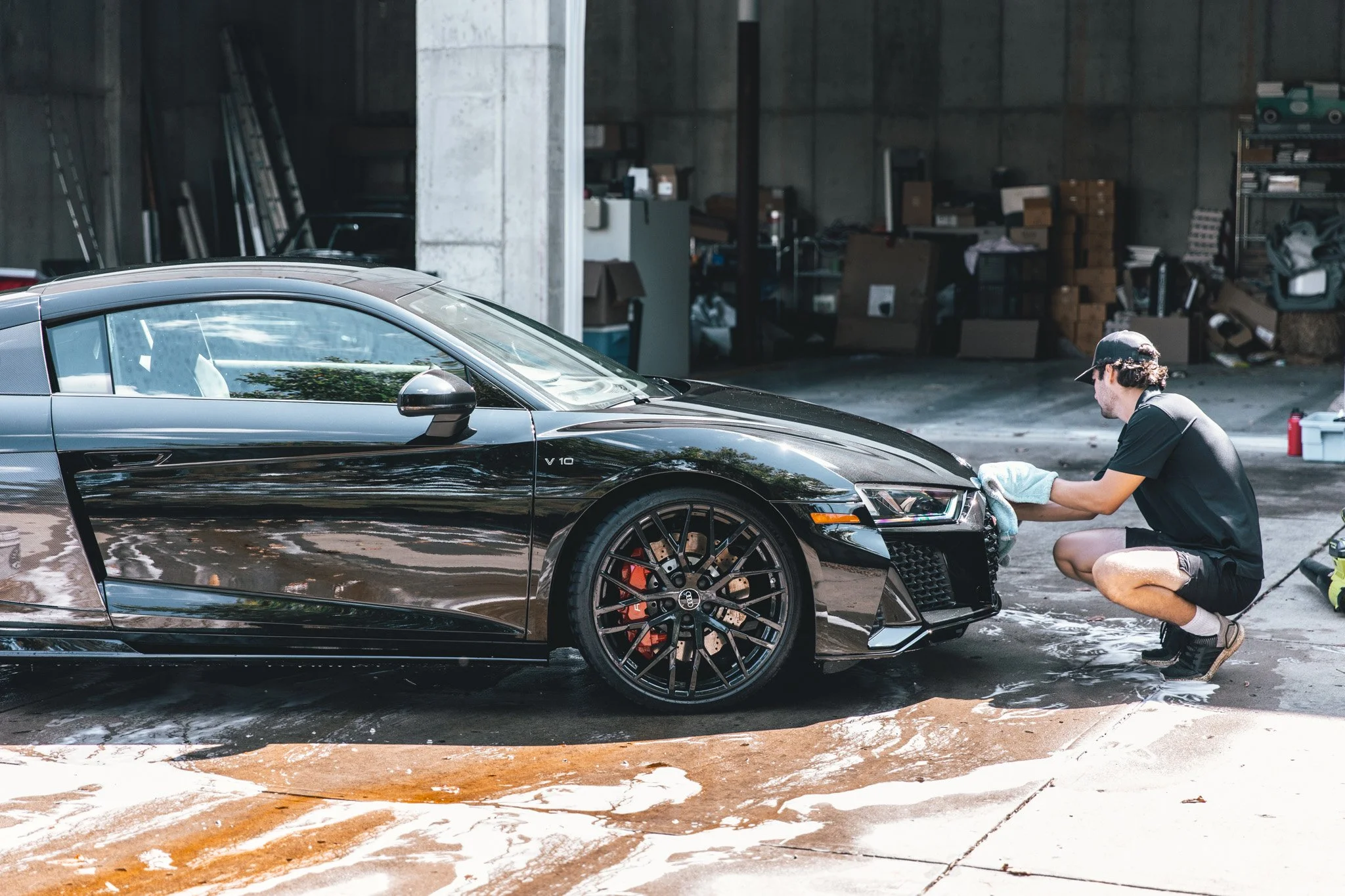 Exterior Wash: We use a foam cannon to apply soap, followed by a thorough hand wash using towels dedicated solely to the exterior. Towels are discarded after a few panels, ensuring a clean, scratch-free finish on every panel.